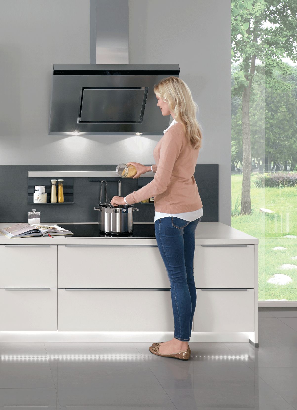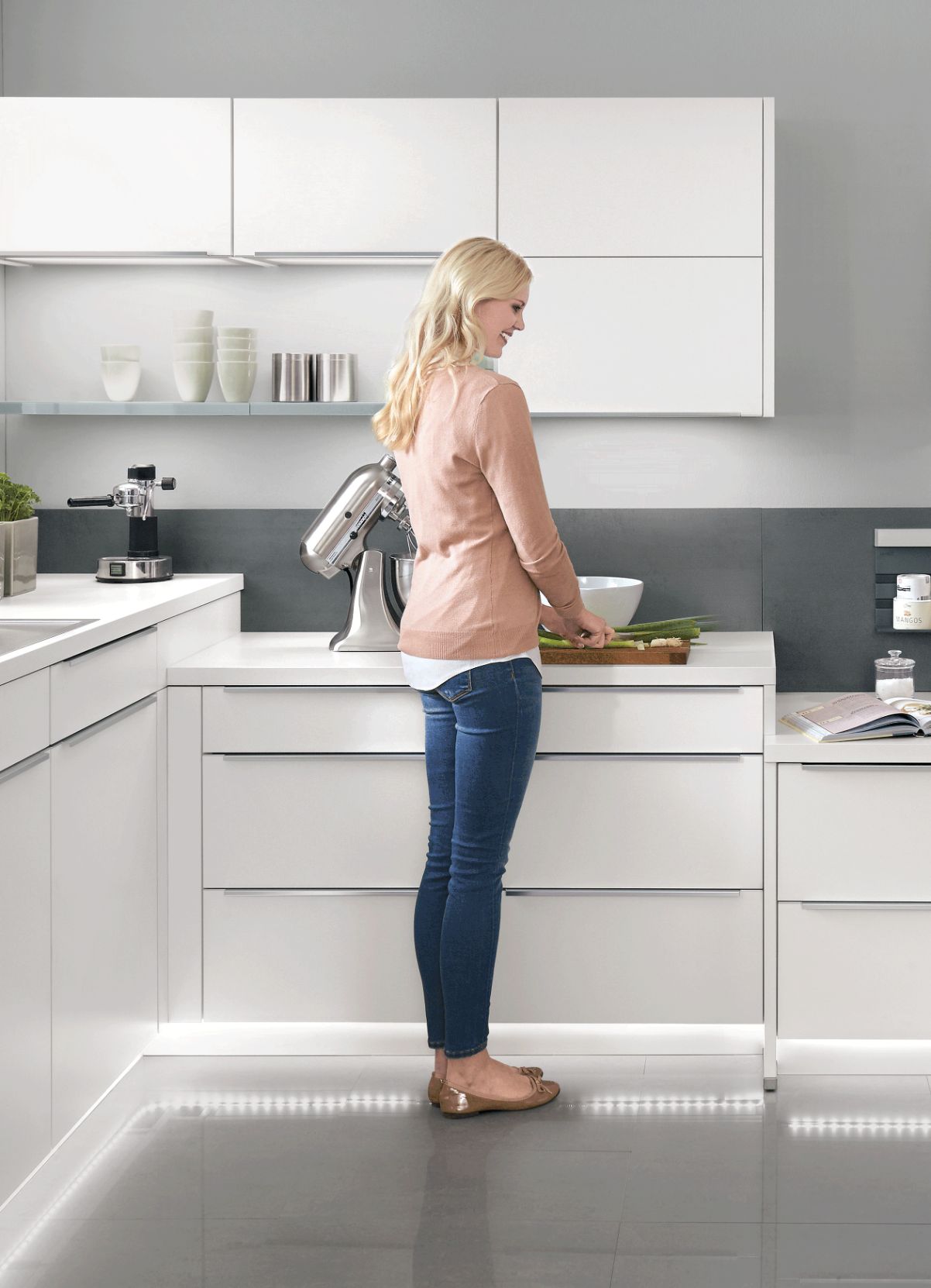 Nel caso ideale, l'altezza mini della cucina dovrebbe trovarsi a 25cm dai gomiti. In questo modo è possibile cucinare con una postura rilassata, senza gravare su spalle e braccia.