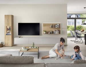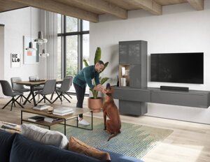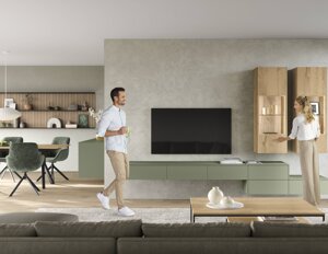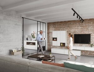 Le soluzioni flessibili dei nostri mobili ci permettono un design unitario. La combinazione di materiali e motivi della cucina può essere ripresa in tutti gli ambienti, adottando un linguaggio formale moderno, per un'abitazione dallo stile omogeneo.